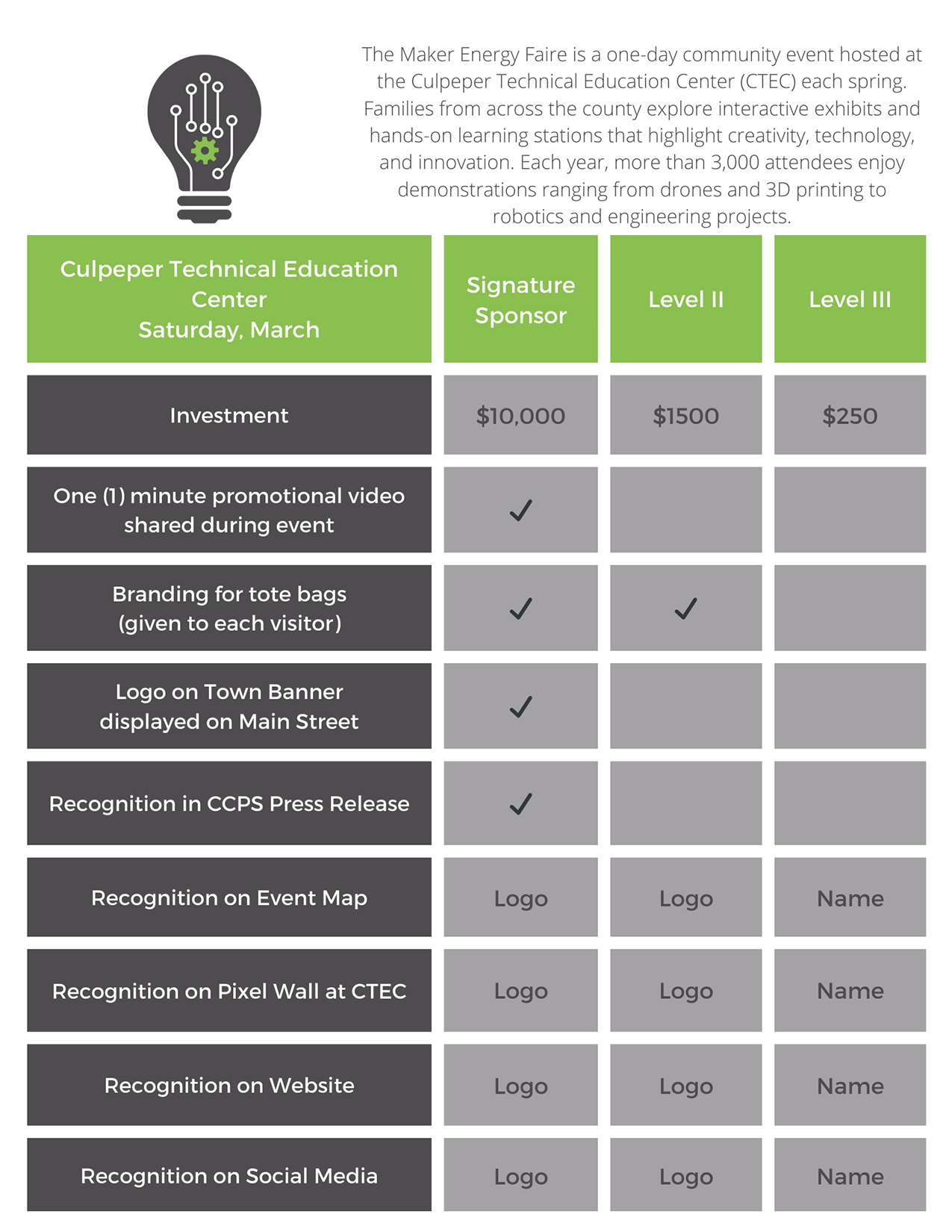 Whether you sponsor E-Squared, STEM Days, Career Exploration, Mock Interviews, or the Maker Energy Faire, your support helps deliver real-world learning experiences that inspire students and strengthen Culpeper’s workforce.